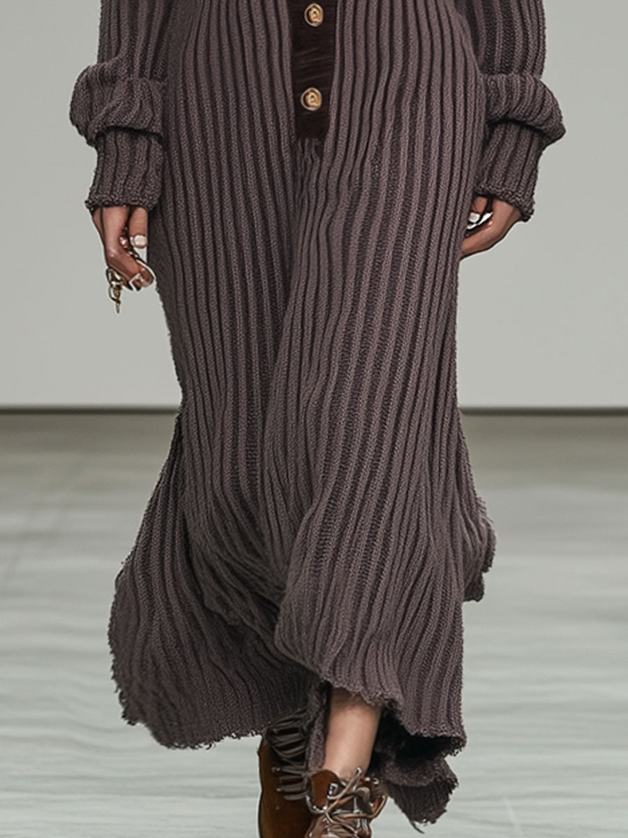 Casual And Fashionable Purple Woolen Striped Loose Maxi Dress