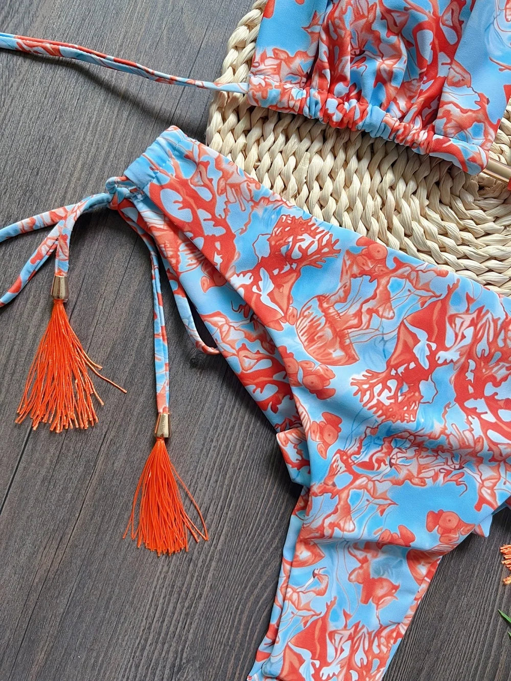 To preserve the delicate shimmer fabric of your bikini, please avoid rough surfaces such as rocks and pool edges to minimize snagging. Be cautious when wearing jewelry and bags, as they can catch on the fabric.