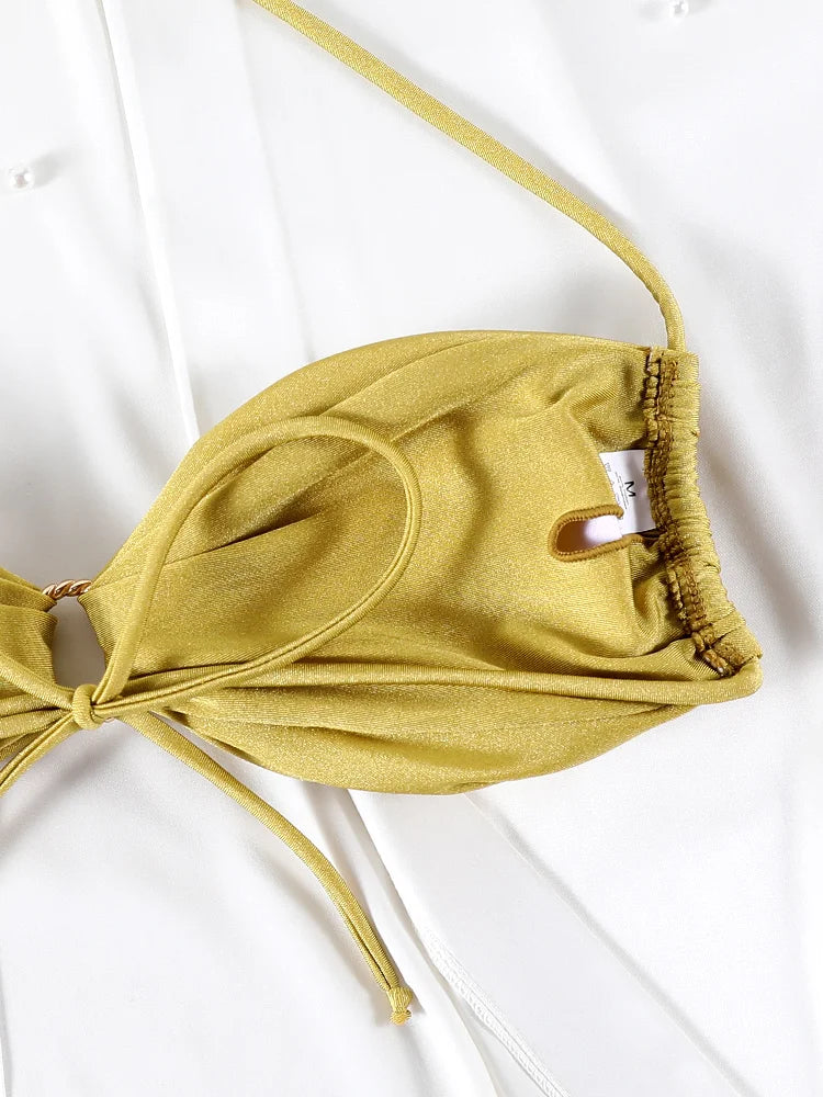 To preserve the delicate shimmer fabric of your bikini, please avoid rough surfaces such as rocks and pool edges to minimize snagging. Be cautious when wearing jewelry and bags, as they can catch on the fabric.