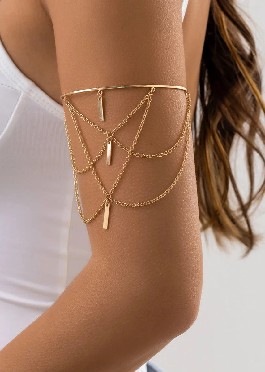 Turn heads and steal the show—this Golden Tassel Arm Bracelet is your secret weapon for effortless summer glamour. Picture yourself at a sunset party, your arm catching the light with every move, the delicate tassels adding just the right touch of elegance and fun. Perfect for beach days, rooftop drinks, or that dreamy vacation you've been planning—this bracelet is more than an accessory; it's the final touch that makes you unforgettable. Ready to shine? Add it to your look today!