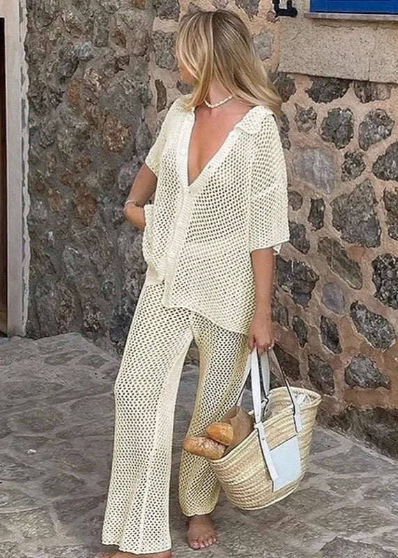 Effortlessly chic and ultra-sexy, the Mesh Cardigan Set is your ultimate beach-to-street look. Featuring a breezy, short-sleeve cardigan, high-waisted mesh pants, and a sleek fit, this set brings bold style and comfort to your summer wardrobe. Whether you're lounging by the pool or hitting the streets, this versatile set is your go-to for relaxed elegance.