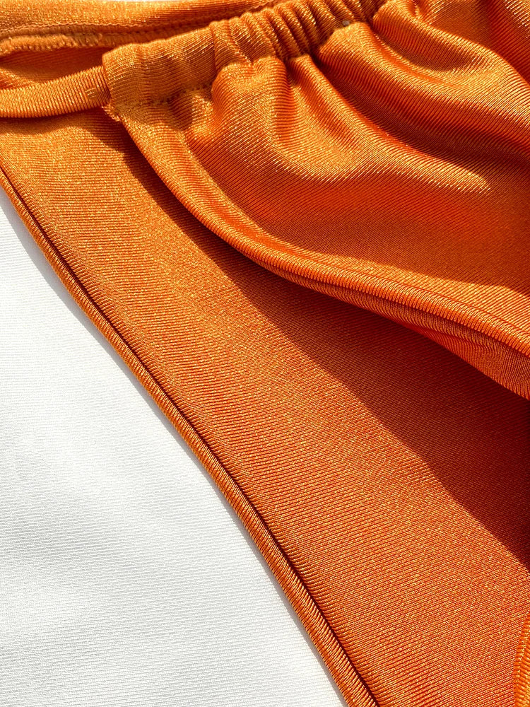 To preserve the delicate shimmer fabric of your bikini, please avoid rough surfaces such as rocks and pool edges to minimize snagging. Be cautious when wearing jewelry and bags, as they can catch on the fabric.