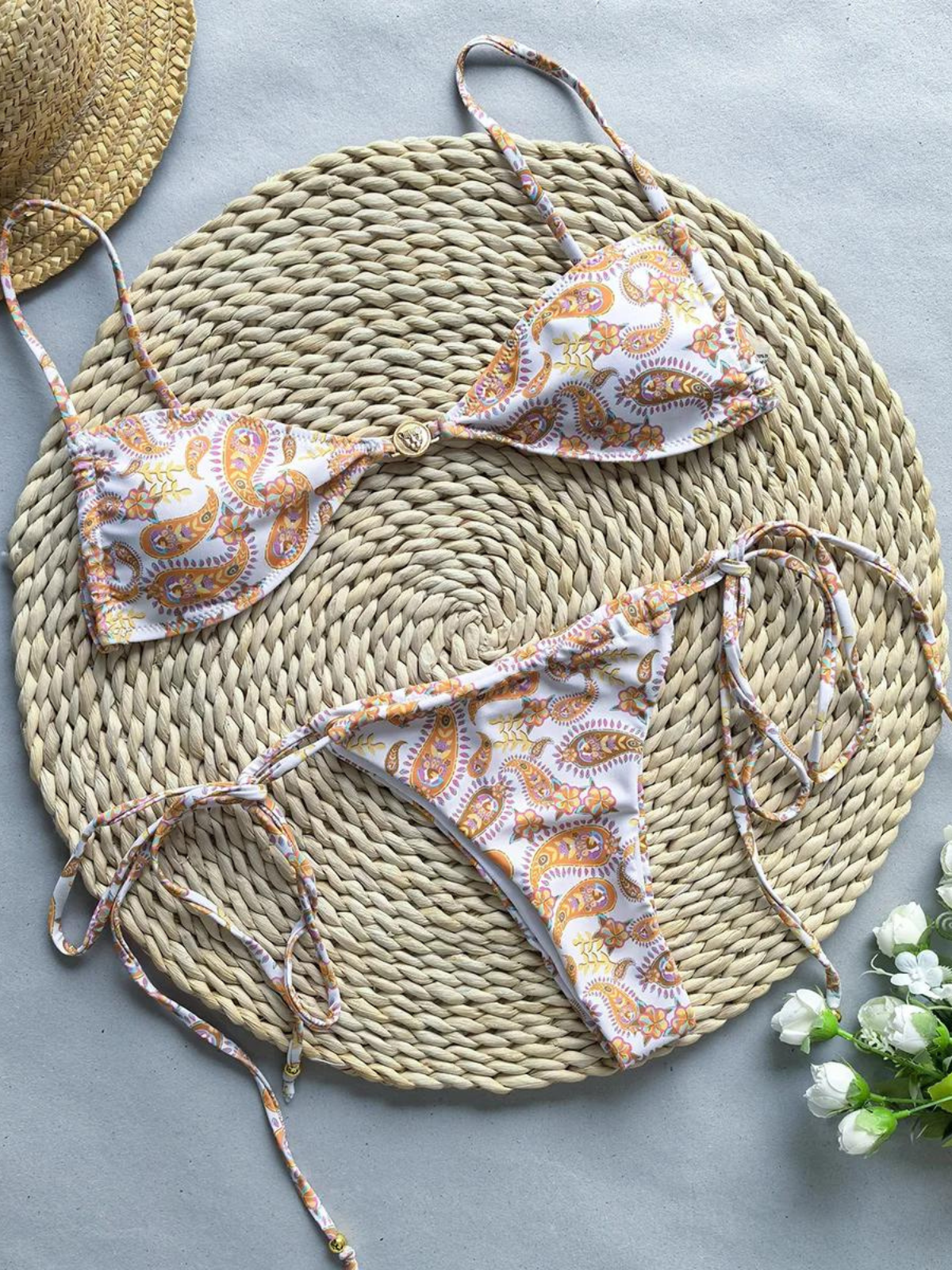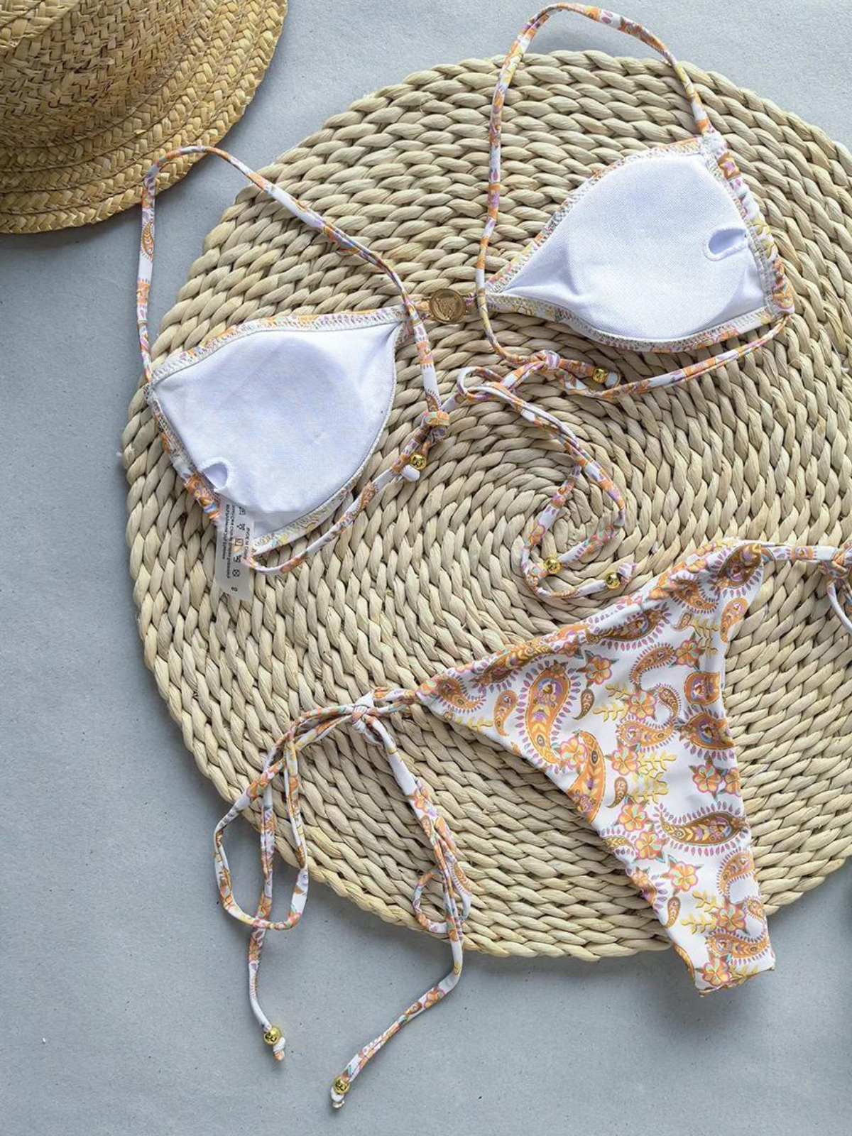 To preserve the delicate shimmer fabric of your bikini, please avoid rough surfaces such as rocks and pool edges to minimize snagging. Be cautious when wearing jewelry and bags, as they can catch on the fabric.