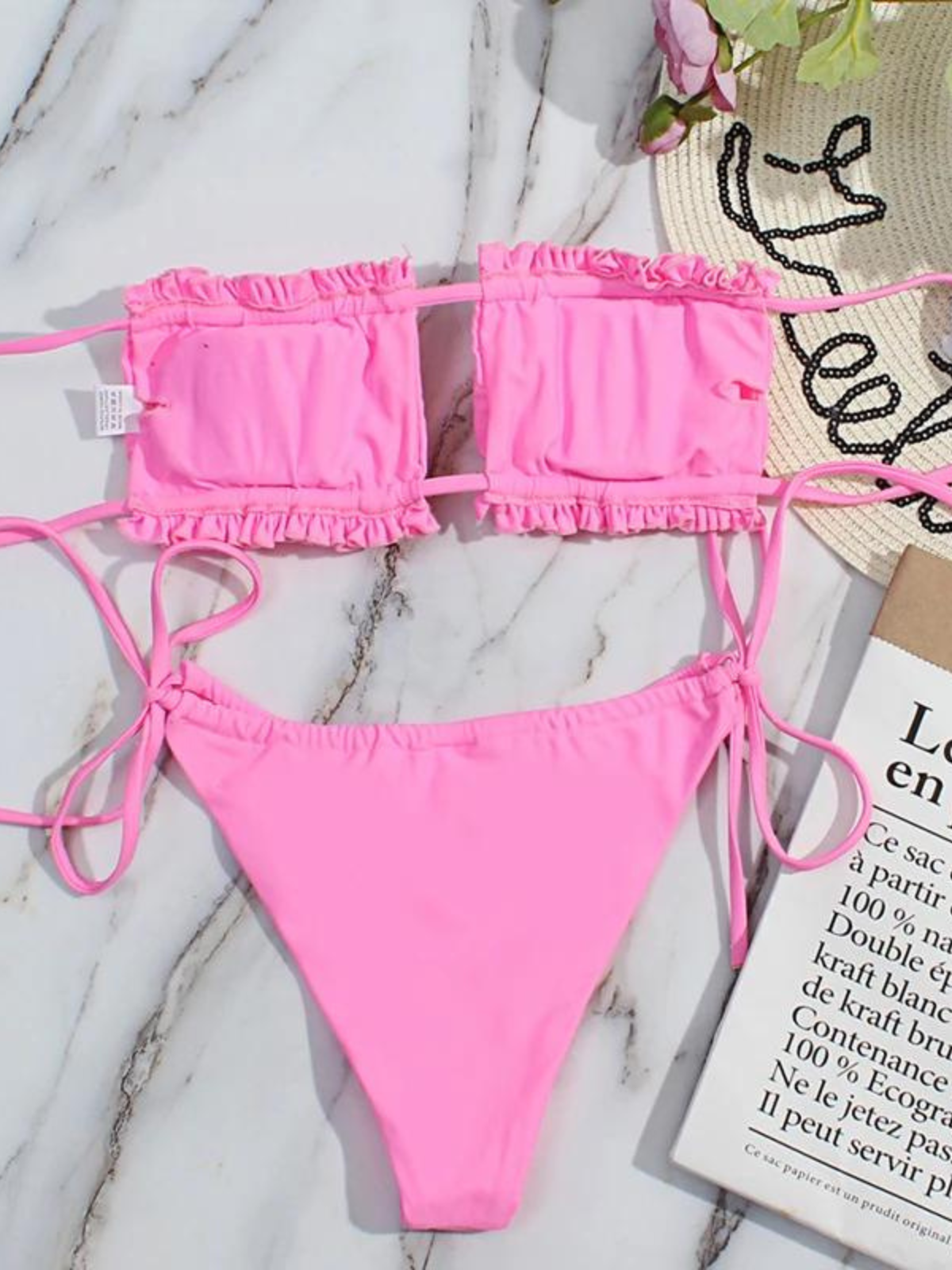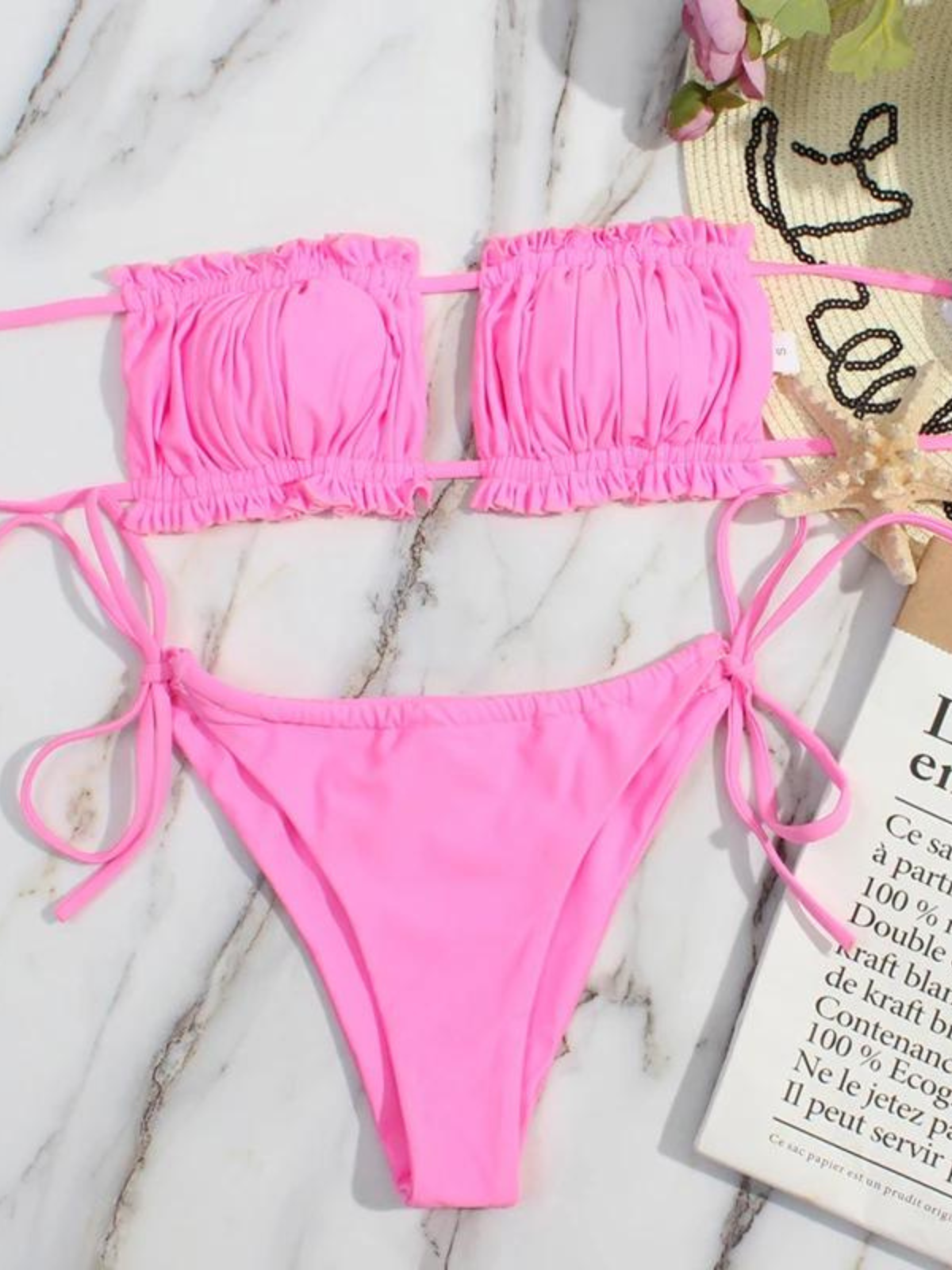 Solid Bandeau Bikini Set