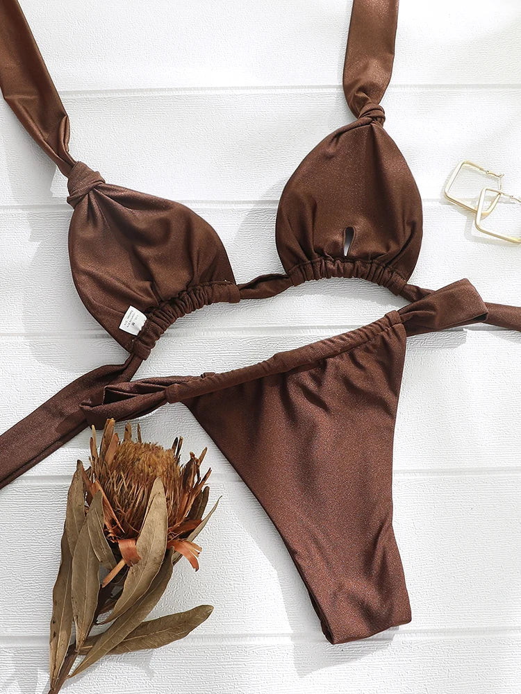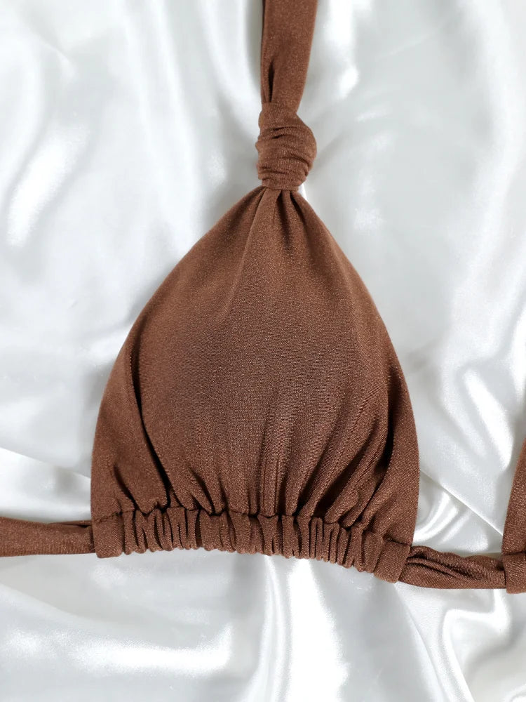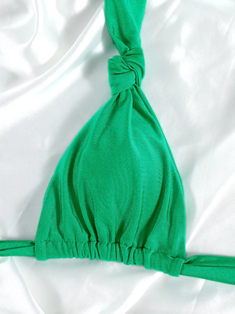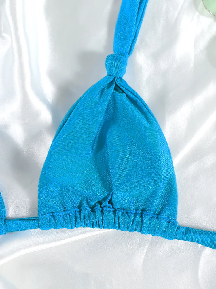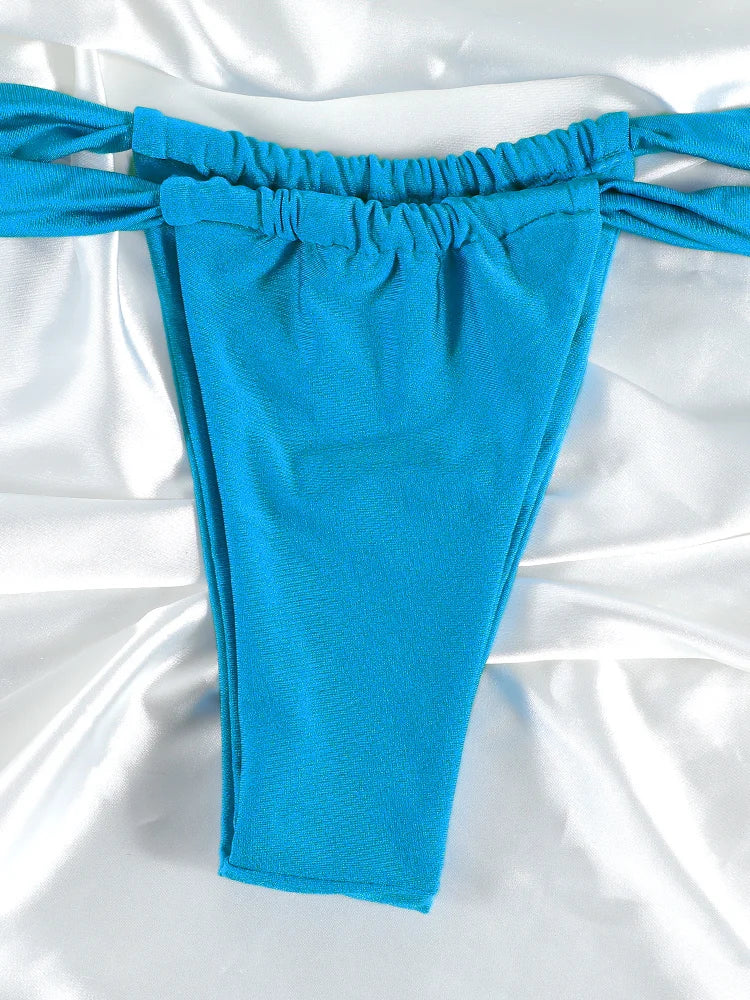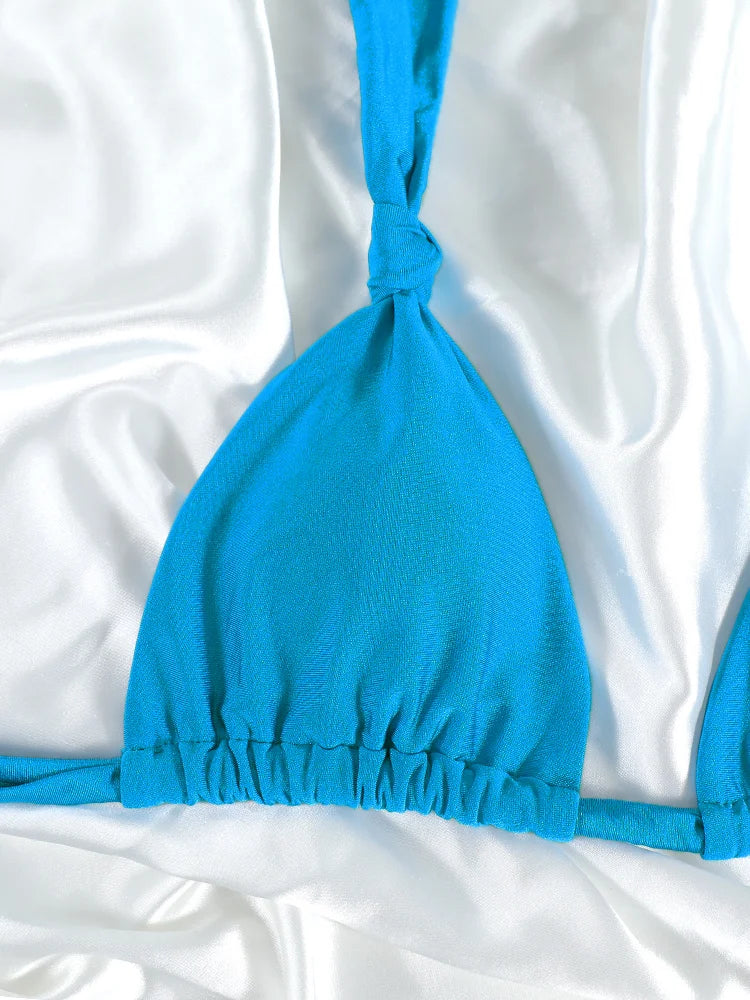 To preserve the delicate shimmer fabric of your bikini, please avoid rough surfaces such as rocks and pool edges to minimize snagging. Be cautious when wearing jewelry and bags, as they can catch on the fabric.